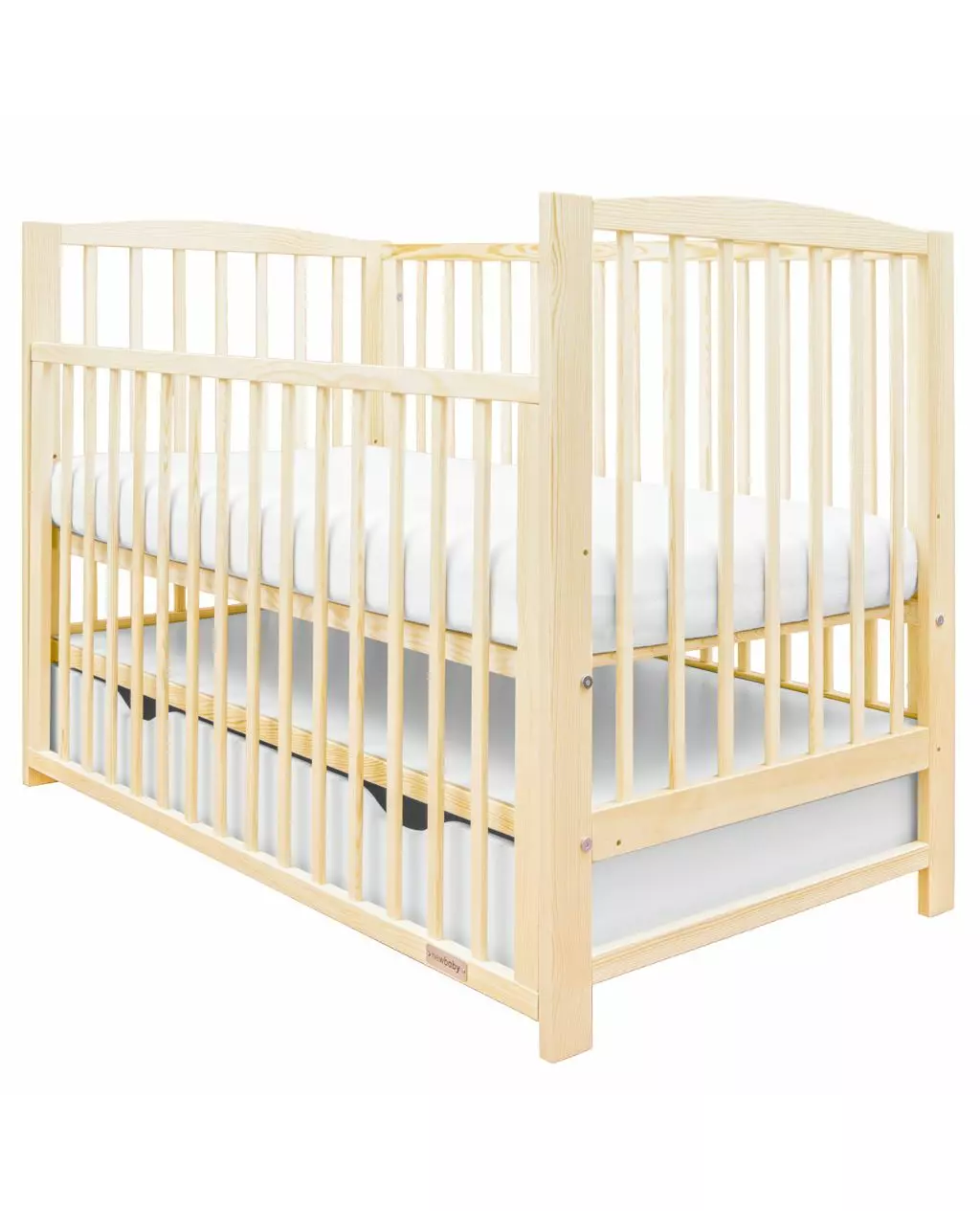 Houten babybedje van New Baby met spijlen en lade, ontworpen voor veilig slapen en comfort. Dit babybedje in natuurlijke afwerking is een perfect meubel voor de babykamer. Gemaakt van hoogwaardig FSC-gecertificeerd grenenhout, biedt het bedje niet alleen een veilige en duurzame oplossing, maar ook een stijlvolle uitstraling.