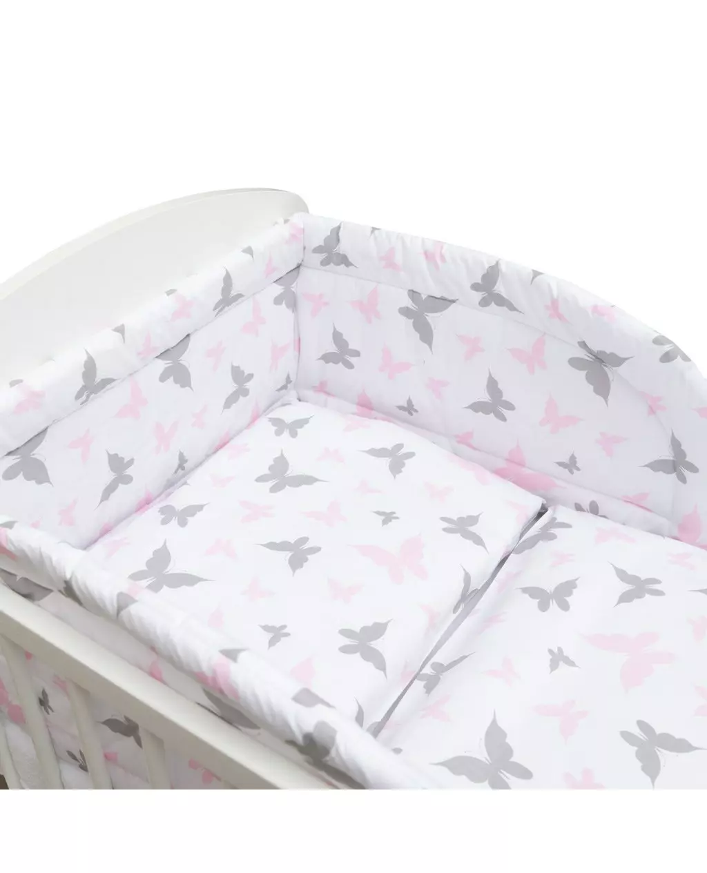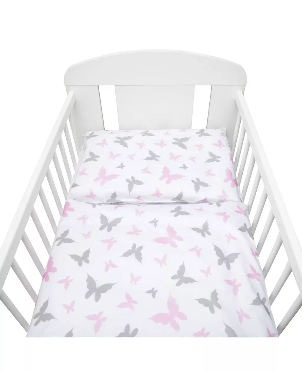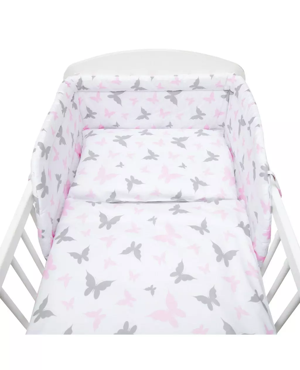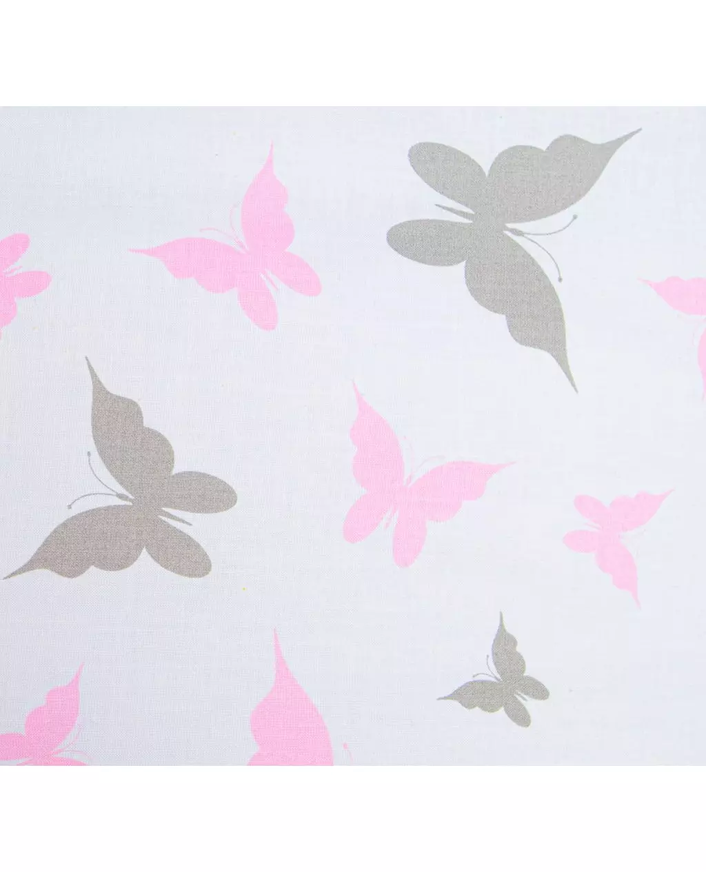 3-delige ledikantset - Katoen - Roze/grijze vlinders