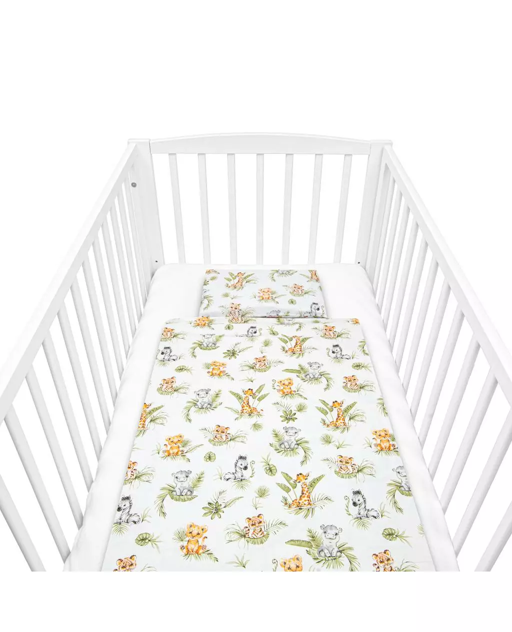 Maak de kinderkamer compleet met het New Baby kinderbedje met dierenprints en de 2-piece beddenset in een vrolijk jungle thema. Dit beddengoed is perfect voor een babykamer en biedt een speelse sfeer met motieven van giraffen, olifanten, leeuwen en zebra’s. Met afmetingen van 90/120 cm past deze beddenset uitstekend in elk babybedje, waardoor jouw kleintje heerlijk kan slapen in stijl.