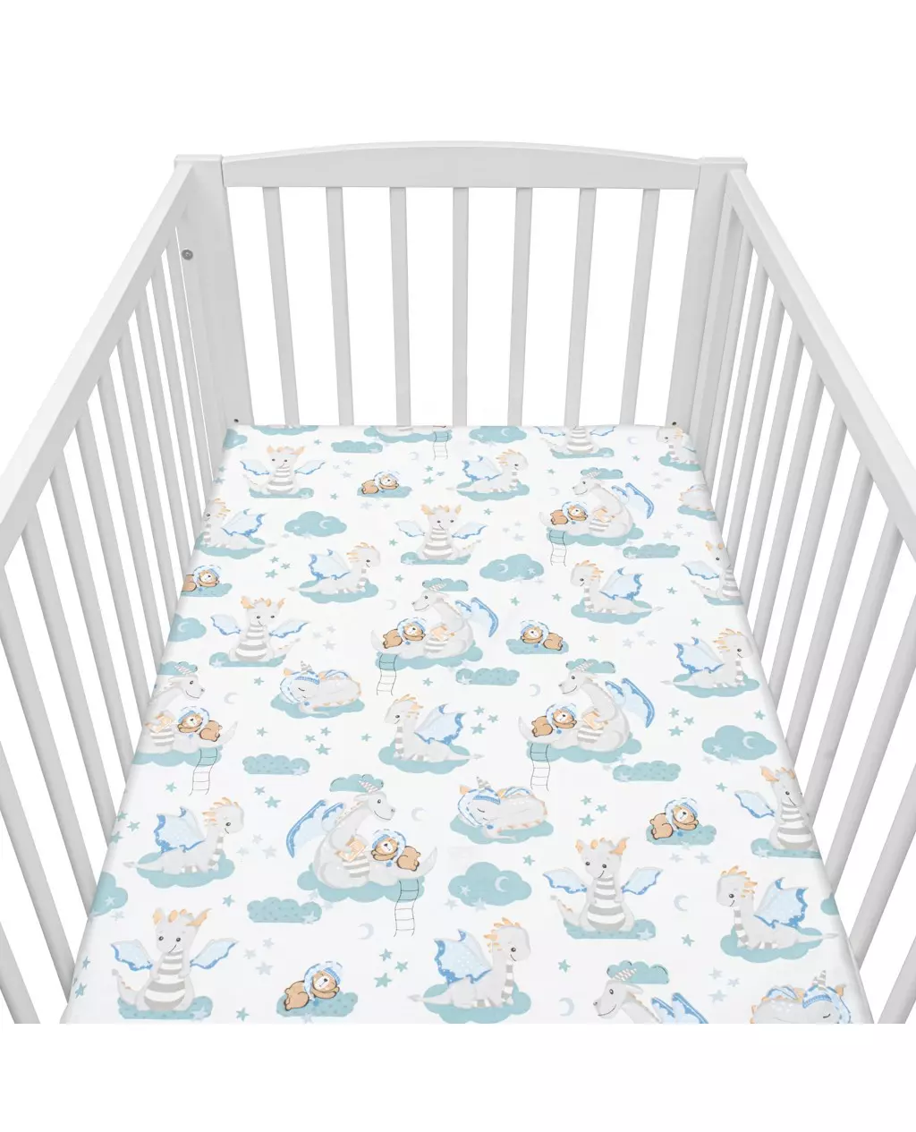 Maak de babykamer compleet met de New Baby wiegdeken voorzien van een betoverend drakenpatroon en wolkenprint. Dit hoeslakentje van 120x60 cm is speciaal ontworpen voor het babybedje en biedt een zachte, comfortabele ondergrond die perfect is voor de gevoelige huid van je kleintje. Het vrolijke ontwerp stimuleert de fantasie en voegt een speels accent toe aan iedere babykamer.