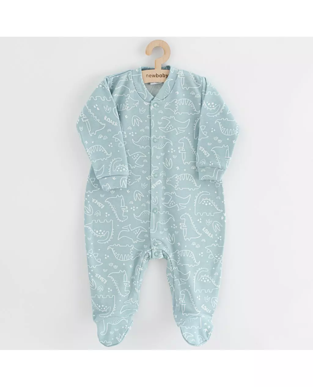 De jumpsuit is versierd met vrolijke schetsen van dinosaurussen en bevat de leuke tekst "ROAR", wat het nog unieker maakt. Dankzij de voetjes blijft je baby warm en gezellig. Deze New Baby Classic II collectie is speciaal ontworpen voor de jongste moderne ouders die kwaliteitsvolle babykleding waarderen.