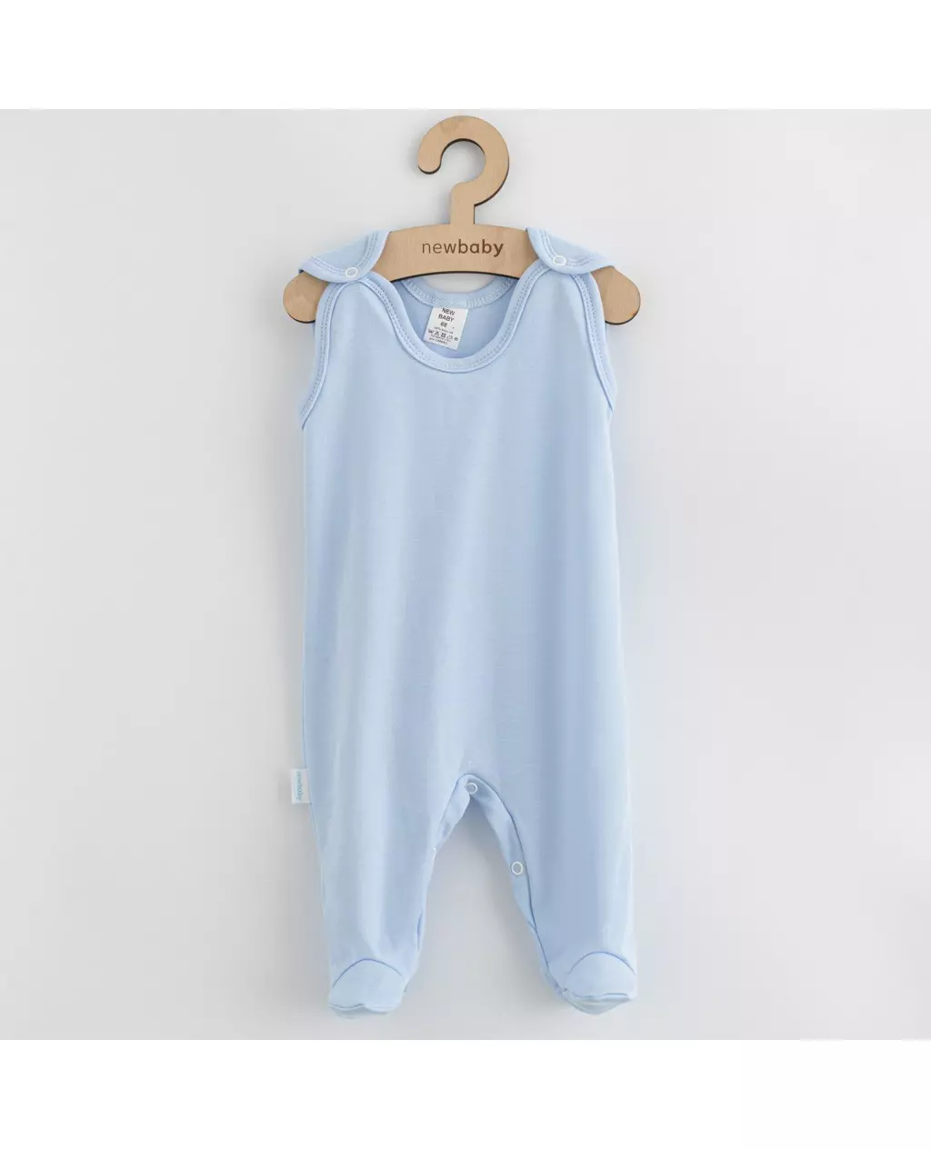Ontdek onze lichtblauwe baby romper, een mouwloze jumpsuit, gemaakt van 100% katoen en in maat 80 (9-12 maanden). Deze romper biedt ultiem comfort voor je kleintje. Met knopen op de schouders en drukknopen tussen de benen is aankleden eenvoudig. De monochrome look maakt het een tijdloze aanvulling op de garderobe van je baby. De romper wordt geleverd aan een elegante houten hanger, met het woord "newbaby" erop gegraveerd, wat zorgt voor een stijlvolle presentatie. Ideaal voor elke casual gelegenheid.