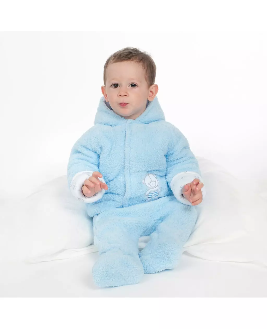 Ben je op zoek naar een schattig en praktisch winterpak voor je baby? Ontdek onze lichtblauwe New Baby jumpsuit in maat 74, speciaal ontworpen voor de koude maanden. Dit teddybeer jumpsuit is gemaakt van warme fleece met een capuchon en anti-allergisch materiaal, perfect voor de gevoelige huid van je kleintje.
