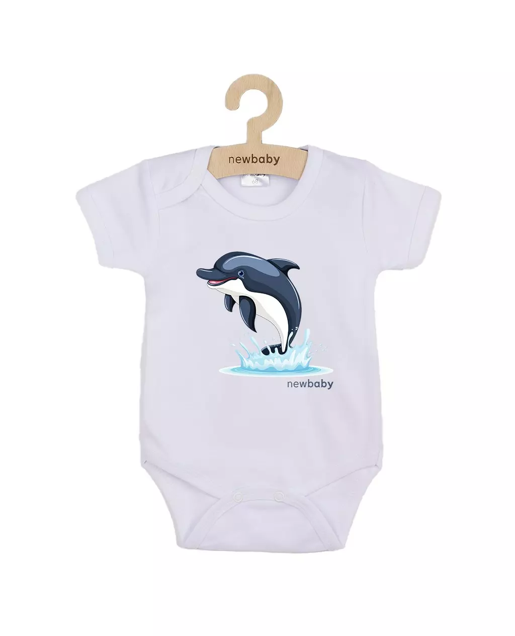 Ontdek de schattige New Baby baby bodysuit met een vrolijke jumping dolphin print. Dit kortmouwige ontwerp is perfect voor jouw kleintje en gemaakt van 100% natuurlijke katoen. Het materiaal is ademend en hypoallergeen, speciaal ontworpen voor de gevoelige huid van baby's. Dit zorgt voor optimaal draagcomfort en maakt het een ideale keuze voor dagelijks gebruik.