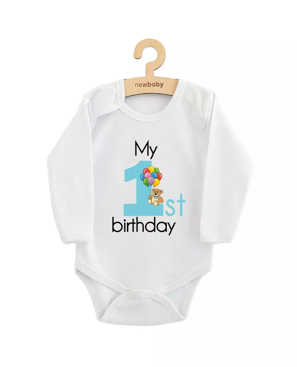 Babyromper - My 1st birthday - Blauwe teddybeer - Longsleeve