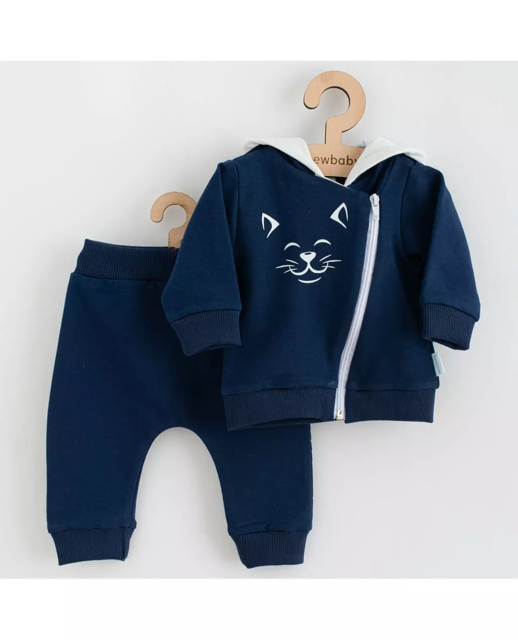 Ontdek de schattige en stijlvolle 2-piece babyset van het Tsjechische merk New Baby Animals. Dit setje, bestaande uit een comfortabele baby sweatshirt en sweatpants in een mooie blauwe kleur, is perfect voor jongens van 3-6 maanden. De hoodie is trendy met een moderne zijrits en een schattig katten gezicht, terwijl de capuchon een fijne katoenen voering heeft. De brede manchetten bij de armen en taille zorgen voor extra comfort.