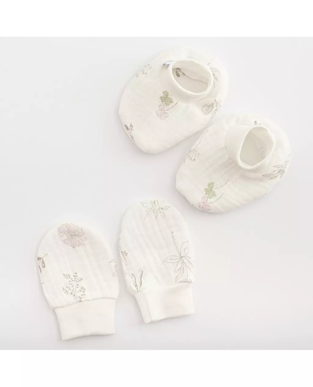 Baby katoen set - caps en wantjes - 100% katoen - bloemmotief