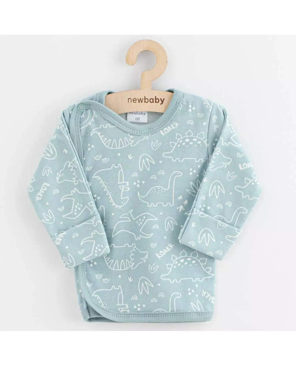 De set omvat drie unieke designs: een effen mintgroene onesie, een vrolijk shirt met dino's voor de kleine avonturier, en een speelse variant met blauwe sterretjes die elke outfit verlevendigen. De mogelijkheid om de mouwen op te rollen voorkomt krabben met de vingernagels en houdt de handen van je baby warm.