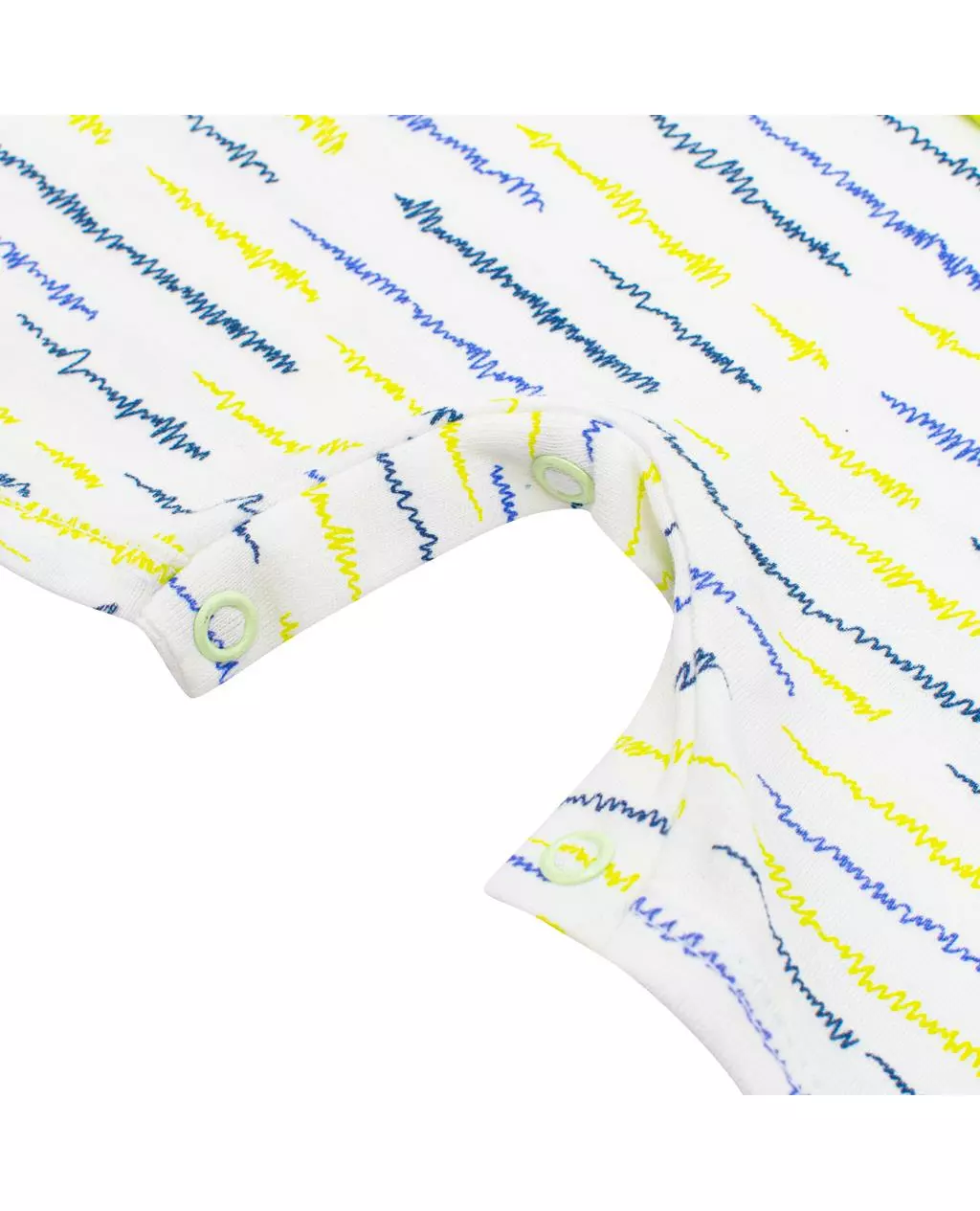De jumpsuit heeft korte mouwen, waardoor het een ideale keuze is voor de zomer. Het praktische drukknoopsluitsysteem op de schouder en tussen de benen maakt het aankleden en verschonen eenvoudig en snel, wat handig is voor drukke ouders.