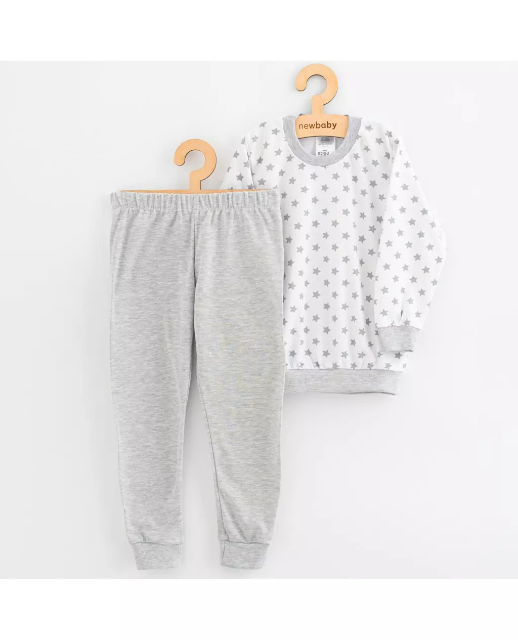 Ontdek de New Baby pyjama set met grijze sterren, een perfecte combinatie van stijl en comfort voor kleintjes. Deze lange mouwen babykleding is vervaardigd uit 100% katoen, wat zorgt voor een zachte en ademende stof die ideaal is voor de gevoelige huid van baby's.