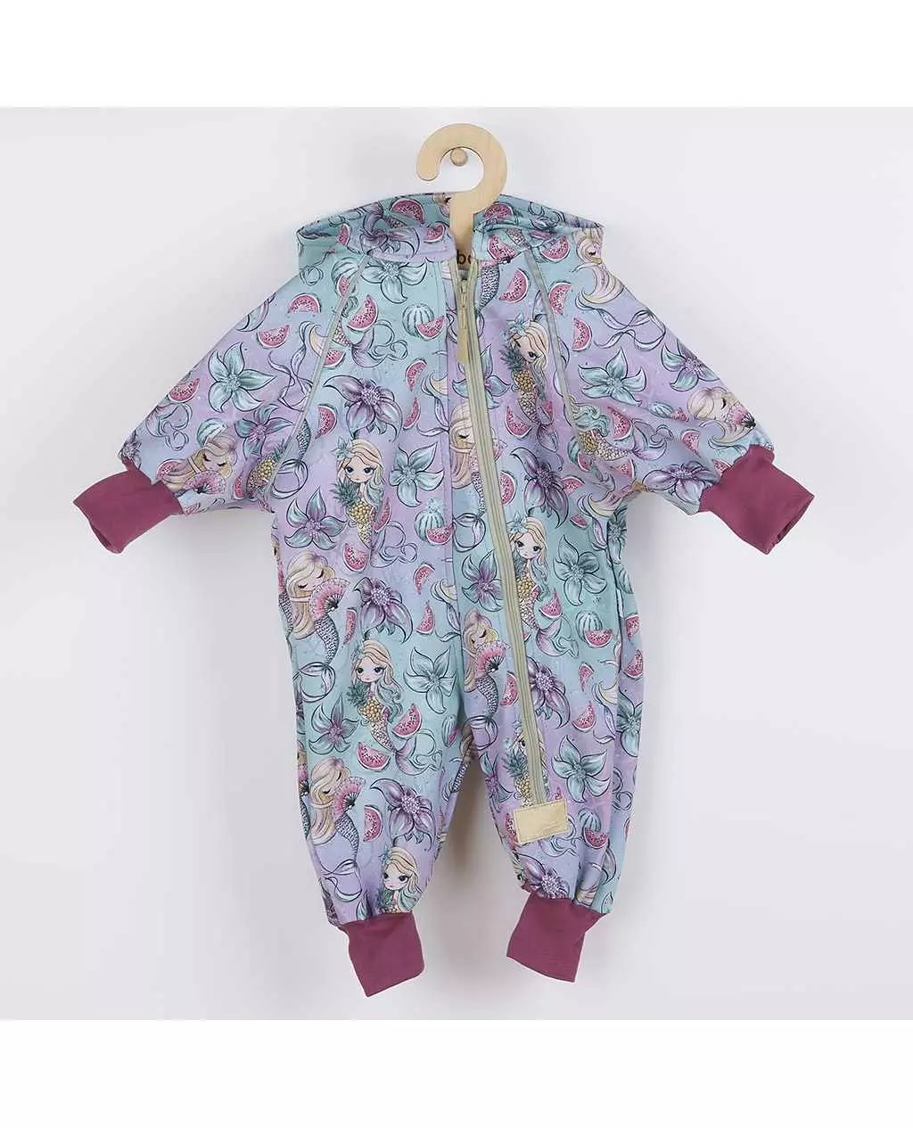 De capuchon biedt extra bescherming tegen het weer, terwijl de bredere, elastische boorden op de mouwen en benen ervoor zorgen dat de overall goed aansluit. Bovendien zijn de mouwen afgewerkt met reflecterende patches voor extra zichtbaarheid. Deze softshell jumpsuit is uitermate geschikt voor sportieve activiteiten, omdat hij zowel ademend als winddicht is. Je baby kan vrij bewegen en genieten van de buitenlucht, zelfs in koude omstandigheden. Het prachtige zeemeerminnenontwerp maakt deze overall niet alleen functioneel, maar ook stijlvol.