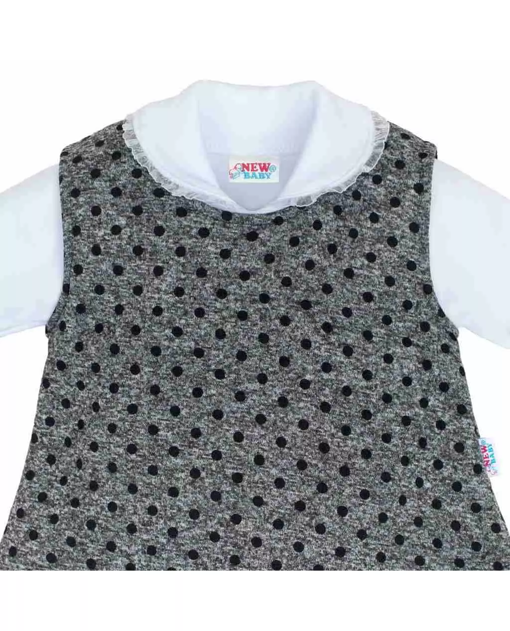Baby Winter Tunic - Mouwloze jurk - Grijs met zwarte stippen