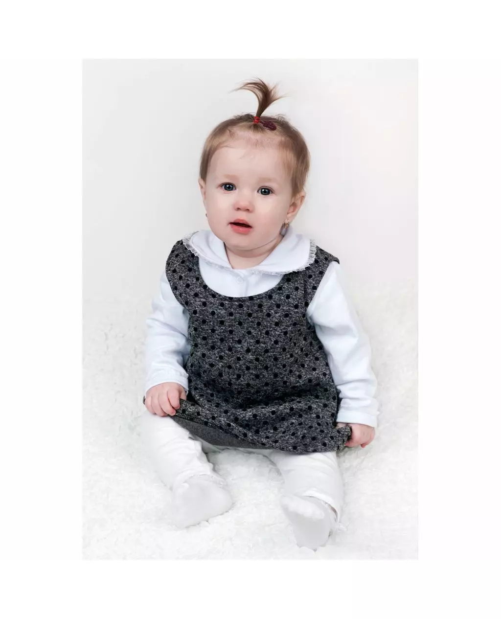 Ontdek de schattige Baby Winter Tunic in een trendy grijs met zwarte stippen. Deze mouwloze jurk in maat 80 (9-12 maanden) is perfect voor kleintjes in de winter. Het A-lijn model maakt het niet alleen praktisch, maar ook stijlvol. Gemaakt van 80% katoen en 20% polyester, zorgt de gekamde binnenkant voor warmte en comfort. De tunic is ideaal voor elke gelegenheid en kan prachtig gecombineerd worden met een bijpassend bodysuit uit de collectie voor een complete look.
