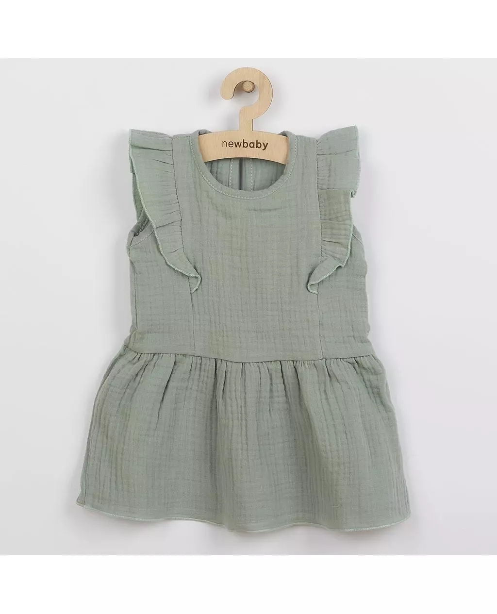 De jurk heeft een mouwlosem ontwerp met schattige ruches aan de schouders en een prachtig gerimpelde rok die elke kleine meid doet stralen. De handige drukknoopsluiting achterop maakt aankleden eenvoudig en snel, wat ideaal is voor drukke ouders. Deze muslin jurk is lichtgewicht, duurzaam en kan eenvoudig meerdere keren gewassen worden, waarbij de stof in de loop der tijd alleen maar zachter en comfortabeler aanvoelt. Zorg ervoor dat jouw kleintje stijlvol de zomer in gaat met deze schattige, lichtgroene babyjurk. Perfect voor elke gelegenheid, van een speelse dag in de tuin tot een feestje met vrienden!