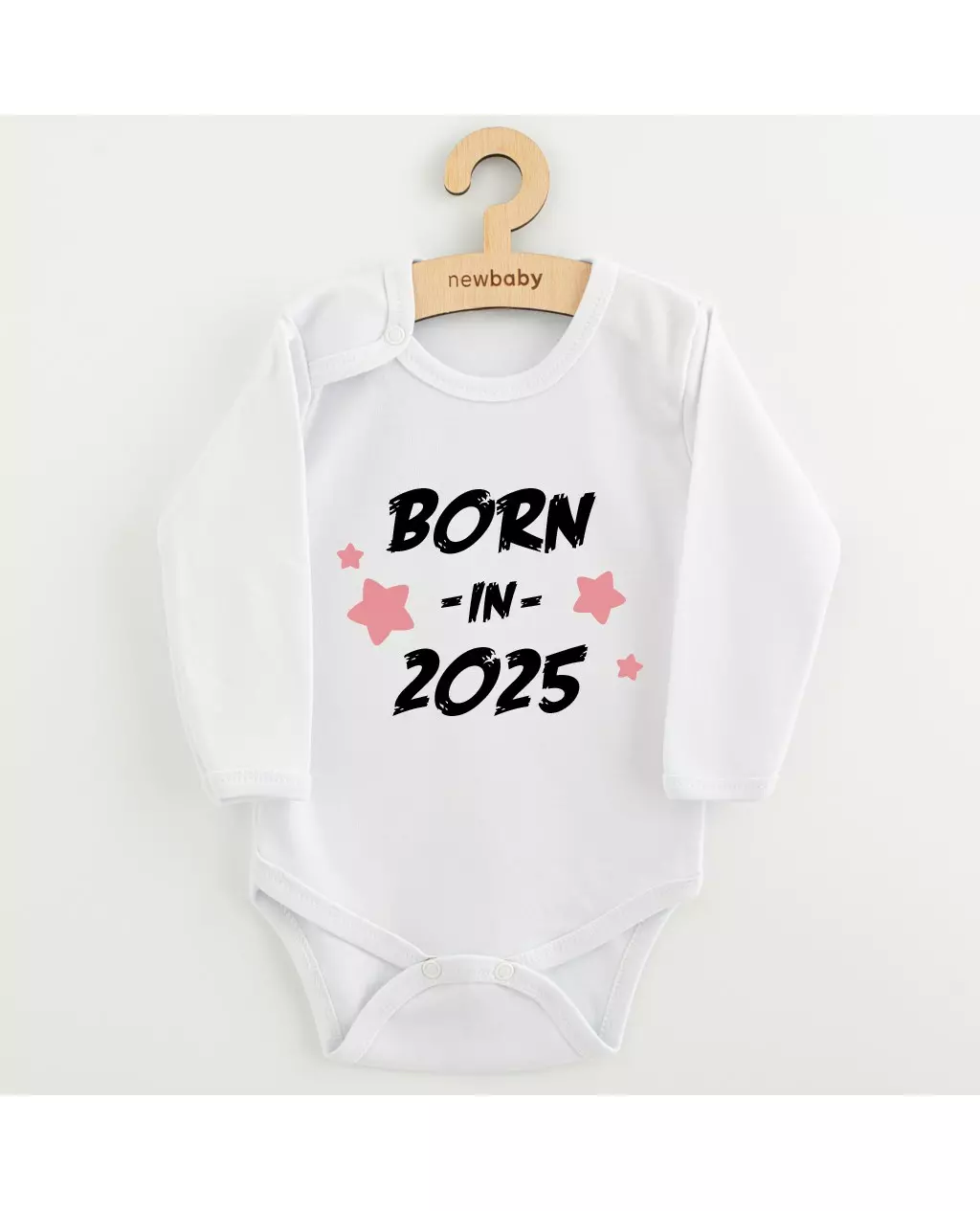 Laat je baby schitteren in de New Baby babyromper "BORN IN 2025". Deze schattige romper, vervaardigd uit 100% katoen en gecertificeerd met OEKO-TEX STANDARD 100, biedt optimaal comfort voor je kleintje. Met een stijlvolle opdruk van het jaar 2025 in opvallende zwarte letters en omringd door onweerstaanbare roze sterretjes, is deze romper perfect voor elke gelegenheid. Dankzij de praktische drukknopen op de schouders en tussen de benen is aankleden en verschonen een fluitje van een cent.