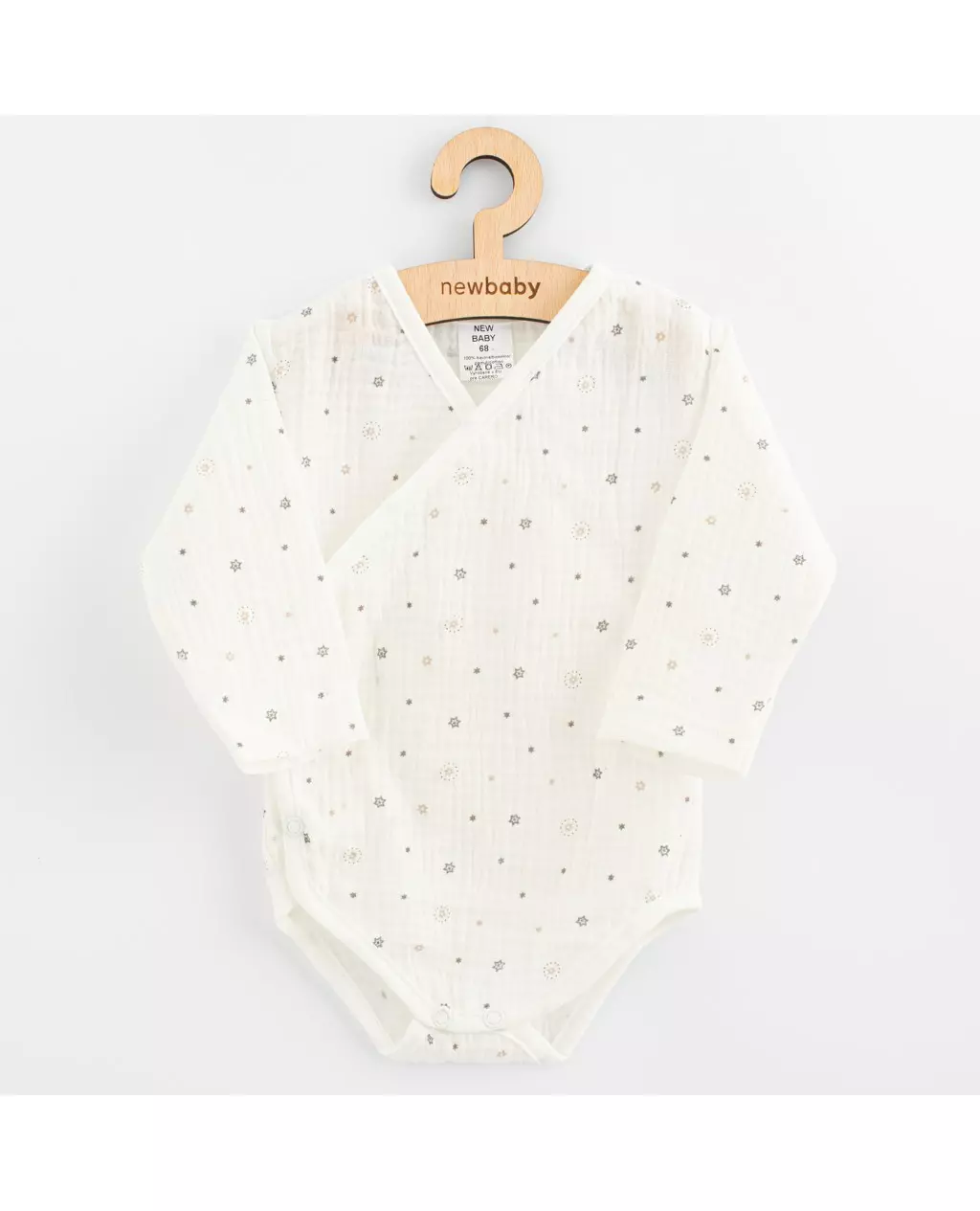 Geef je kleintje het ultieme comfort met de New Baby Arthur muslin romper, gemaakt van 100% katoen. Deze trendy babybody met lange mouwen is perfect voor het verwisselen van luiers, dankzij de handige sluiting aan de zijkant en tussen de benen met drukknoopjes. Het schattige ontwerp met sterretjes en stipjes zorgt voor een speelse en vrolijke look, ideaal voor elke gelegenheid.