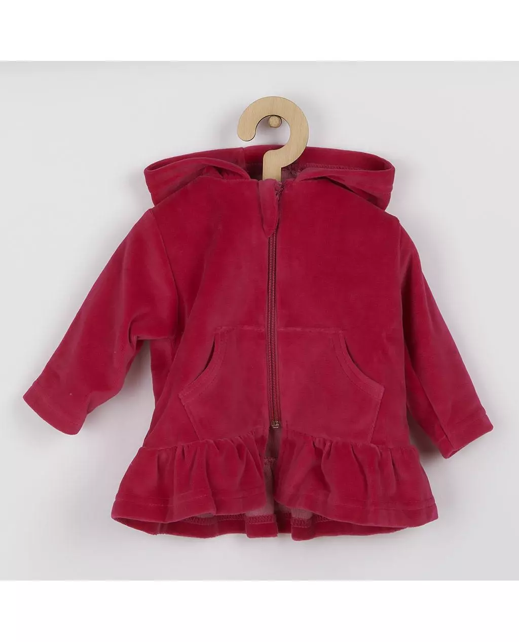Breng stijl en comfort samen met de prachtige hoodie van het Tsjechische merk New Baby. Deze trendy capuchontrui in een stralende donkerroze kleur is perfect voor een kleintje en is geschikt voor baby's van 6 tot 9 maanden.