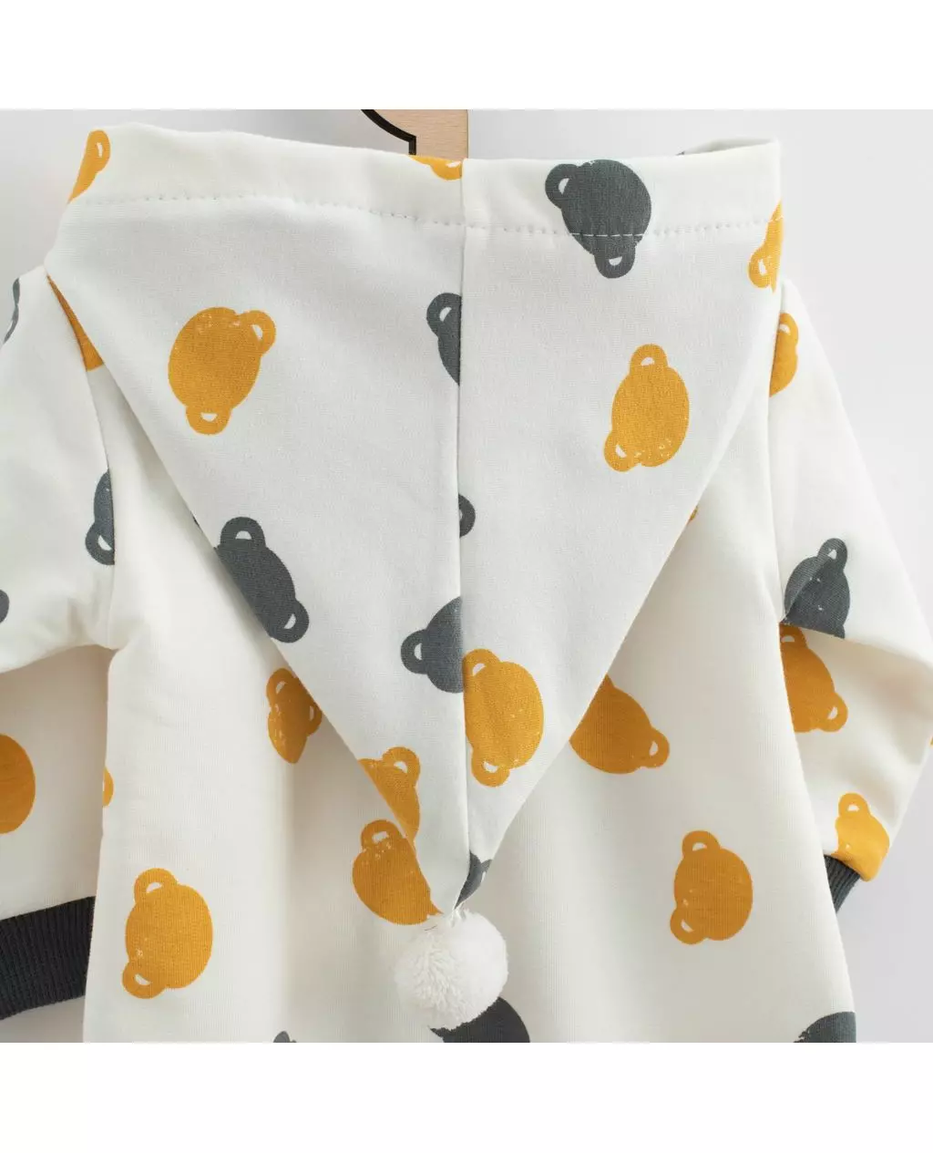 Ontdek de schattige en praktische jumpsuit in grijs, versierd met berenkoppen, perfect voor kleine avonturiers van 12-18 maanden. Deze comfortabele jumpsuit is uitgerust met een capuchon en gemaakt van hoogwaardige thermische katoen, ideaal voor elk seizoen. De volledige ritssluiting zorgt voor gemak bij het aan- en uittrekken, en de elastische boorden bij de mouwen en benen geven extra comfort. De capuchon is gevoerd met een kleurrijke stof en afgewerkt met een schattige pompom, wat de jumpsuit niet alleen functioneel maar ook stijlvol maakt.