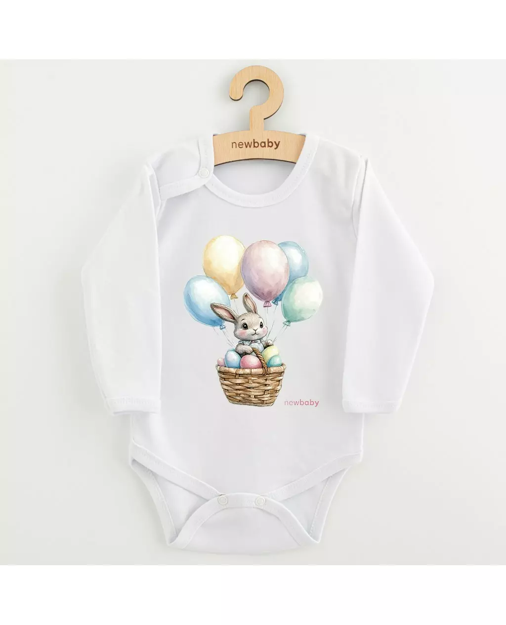 Ontdek de schattige New Baby baby bodysuit met een leuke print van een konijn met ballonnen. Deze bodysuit met lange mouwen is gemaakt van 100% katoen en biedt ultiem comfort voor de gevoelige huid van jouw baby. Het is een stijlvolle toevoeging aan de babykledingkast en ideaal als cadeautje voor een pasgeborene.