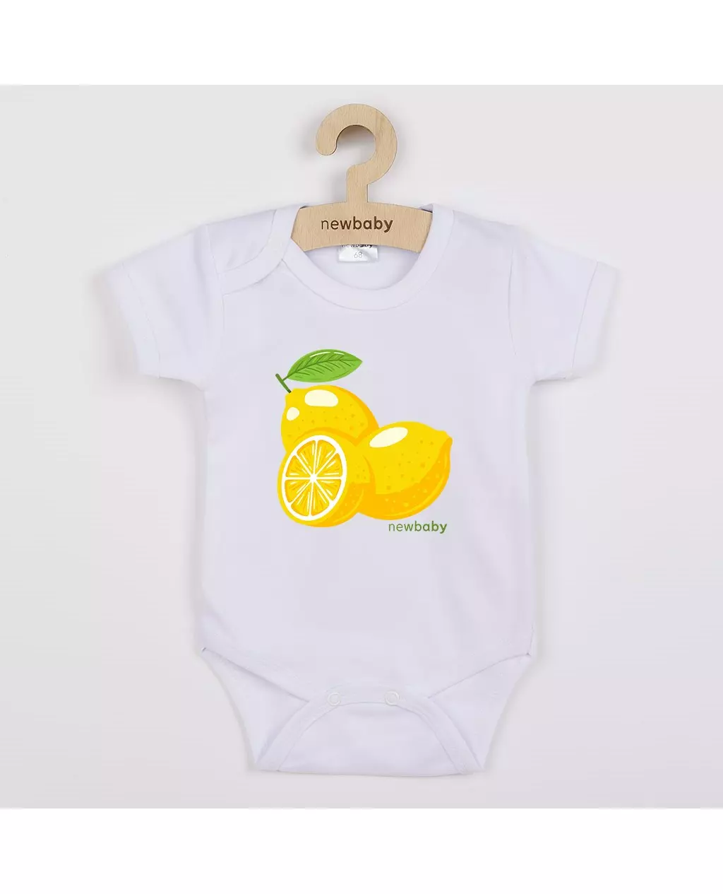 Ontdek de schattige New Baby baby bodysuit met korte mouwen en een vrolijke citroenprint. Deze romper is perfect voor pasgeborenen en gemaakt van 100% zacht, ademend katoen dat hypoallergene materialen bevat.
