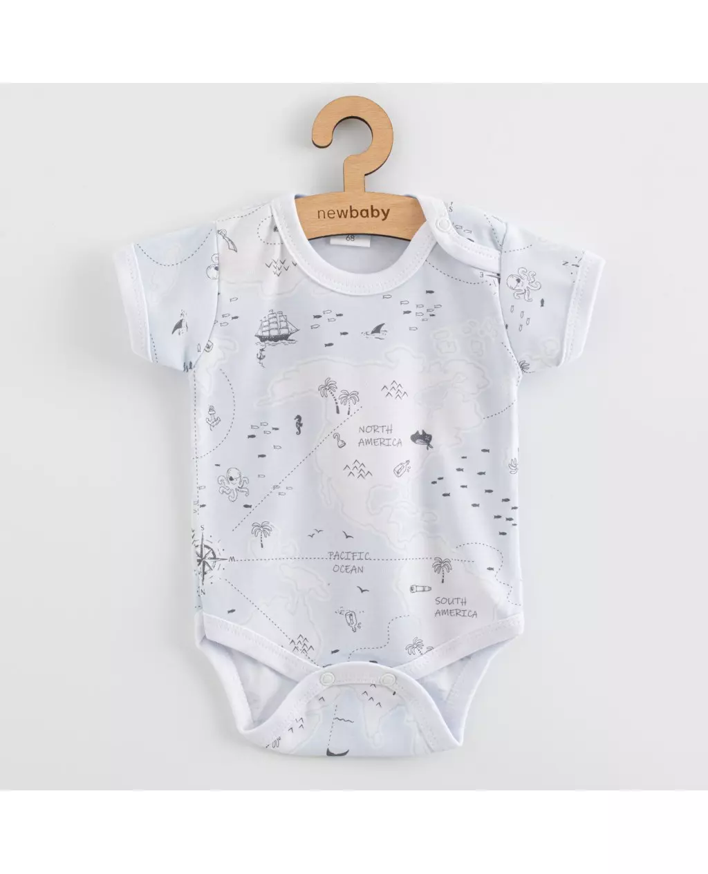 Ontdek de betoverende New Baby Baby Bodysuit met korte mouwen, ideaal voor jouw pasgeboren kindje. Deze schattige baby romper is volledig bedrukt met een creatieve wereldkaart, compleet met oceanen, continenten en leuke afbeeldingen van schepen en dieren. Het is perfect voor ouders die op zoek zijn naar stijlvolle en functionele babykleding.