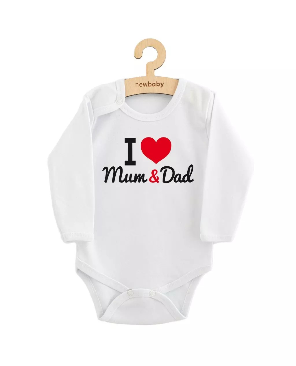 Ontdek de New Baby rompert met lange mouwen in maat 50. Deze schattige baby bodysuit is gemaakt van 100% katoen en heeft een leuke print "I Love Mum & Dad". Geschikt als baby kleding en onderkleding, biedt deze romper optimaal comfort voor jouw kleintje. De gecertificeerde, veilige inkt maakt het een ideale keuze voor pasgeborenen.
