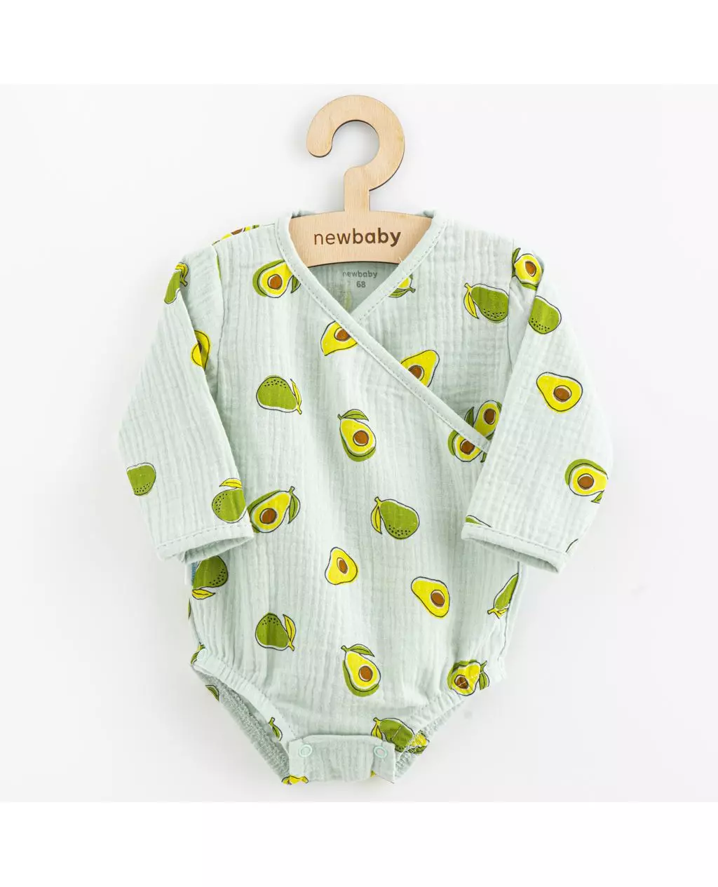 Ontdek de schattige en comfortabele New Baby Avocado romper, perfect voor baby's van 9-12 maanden (maat 80). Deze ademende en lichte baby bodysuit is vervaardigd uit 100% katoen muslin, wat zorgt voor een zijdezachte aanraking op de huid van uw kleintje. Met een vrolijk avocado patroon in frisse, groene tinten is deze lange mouwen romper niet alleen praktisch, maar ook stijlvol.