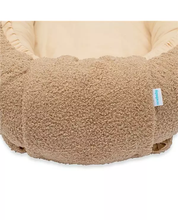 Het New Baby babynestje in teddy beige is een zachte, veilige en multifunctionele plek voor jouw baby om te rusten, slapen of spelen. Met een afmeting van circa 90x50 cm biedt het nestje geborgenheid en comfort, vergelijkbaar met de baarmoeder. Dankzij het gewatteerde ontwerp en de verhoogde randen ligt je baby stabiel en ontspannen, zowel thuis als onderweg.