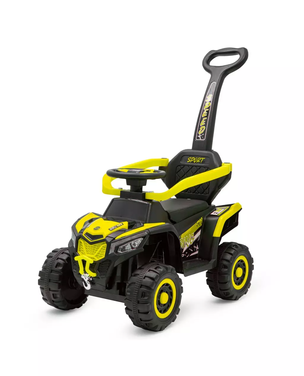De loopauto is uitgerust met vier grote, robuuste wielen die grip hebben op verschillende ondergronden, waardoor kinderen ook op avontuur kunnen in de tuin of het park. De opvallende zwarte kleur met gele accenten geeft het voertuig een trendy uitstraling die kinderen aanspreekt. Het eenvoudig te bedienen stuur zorgt ervoor dat ook de kleinsten zelfverzekerd kunnen rijden.