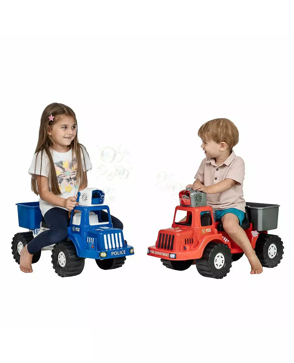 Deze Bayo brandweer loopauto met bellenblaasfunctie van 70 cm biedt kinderen dubbel speelplezier: rijden én bellen blazen. De ingebouwde bellenblazer op het dak produceert vrolijke bubbels zodra de zeepoplossing is toegevoegd en het wiel wordt gedraaid.
